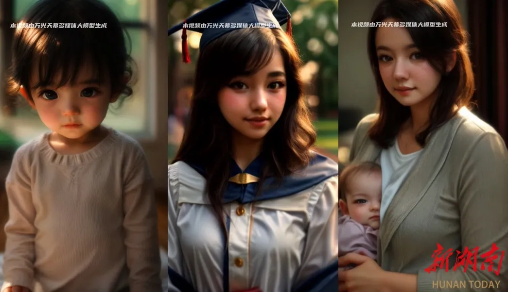 万兴“天幕”大模型生成视频《女孩的一生》截图。图源新湖南