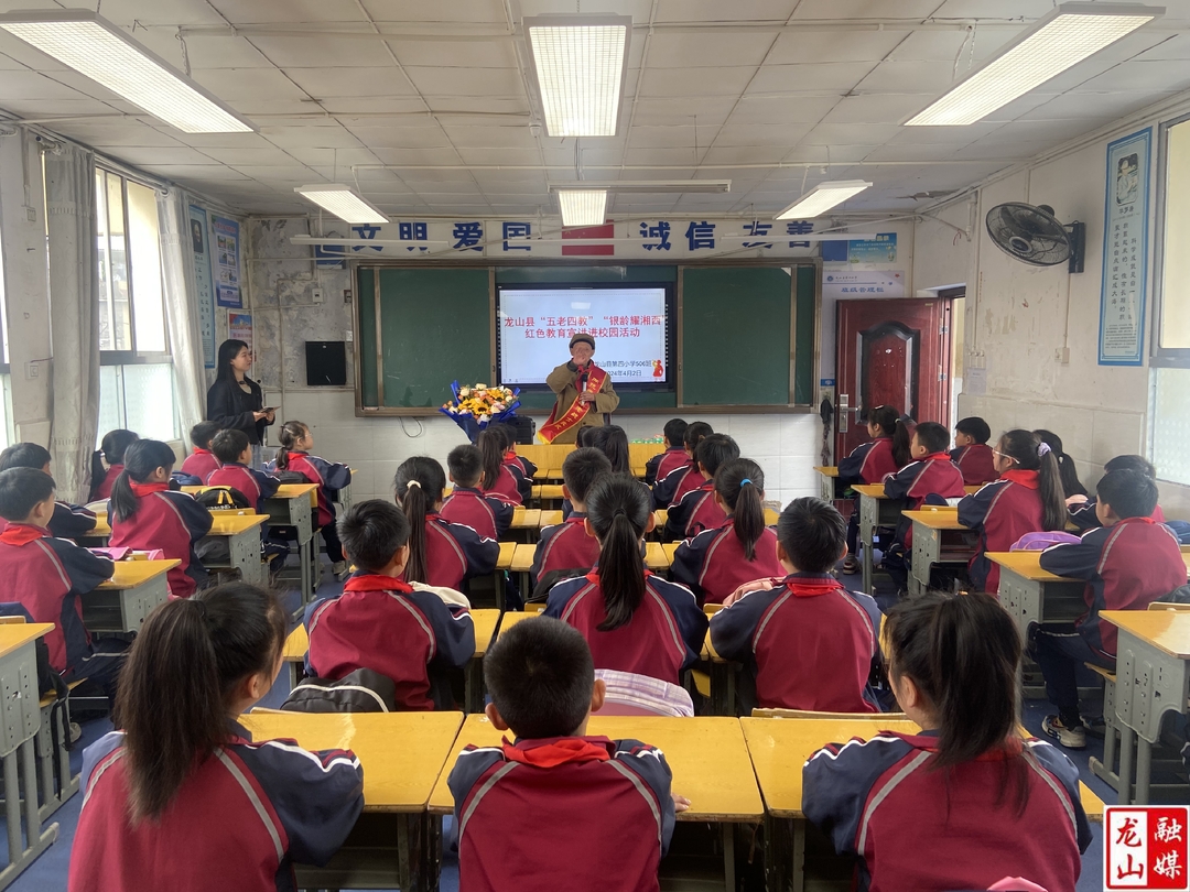 龙山县融媒体中心4月2日讯(记者 向德银 通讯员 瞿慧星)聆听英雄故事 传承爱国情怀。4月2日,龙山县开展“五老四教”暨“银龄耀湘西”红色教育宣讲进校园活动,邀请了93岁抗美援朝老战士彭明发老人,为龙山四小五年级学生上了一堂爱国主义教育课。