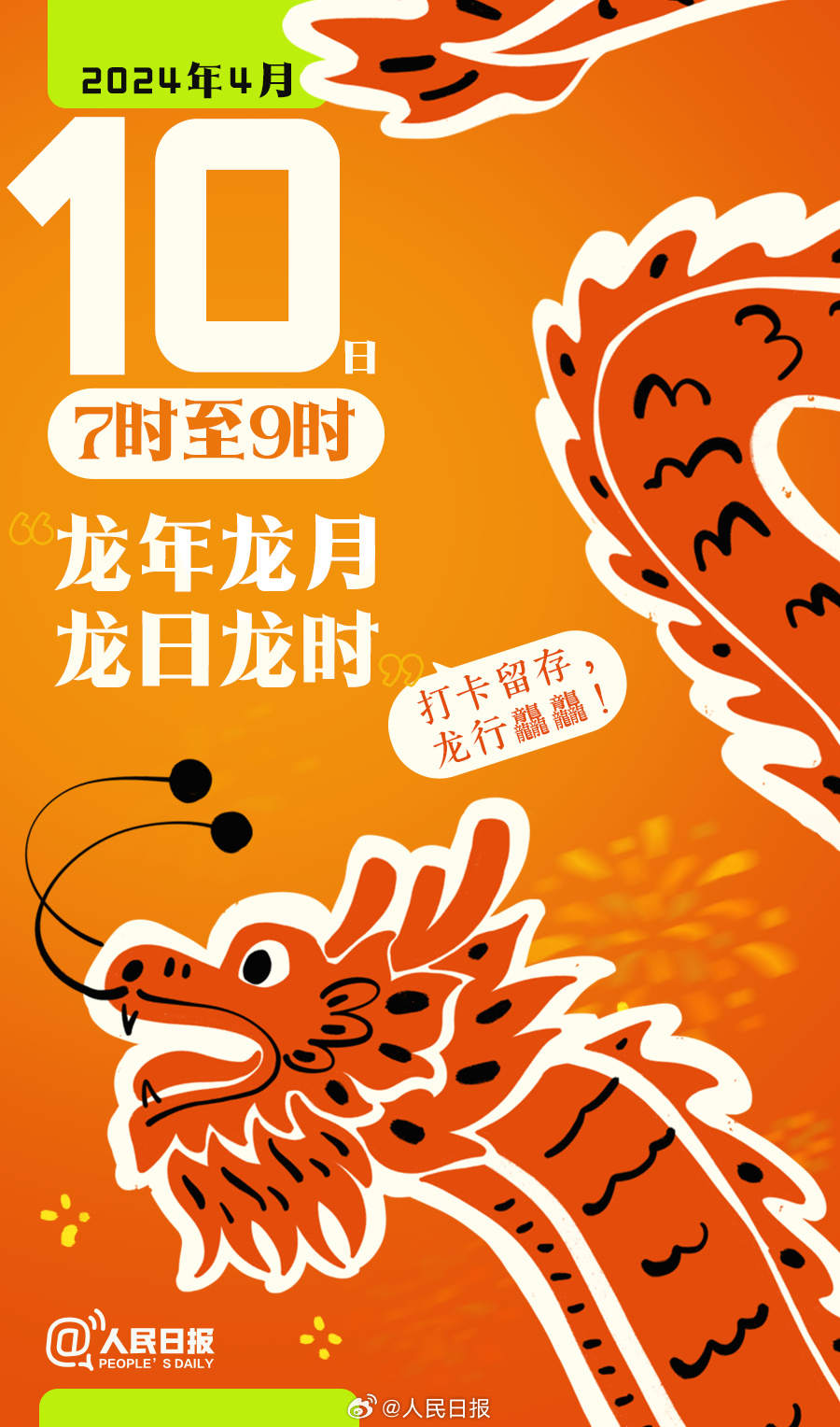 4月10日7时至9时迎来本年度首个“龙年龙月龙日龙时”。今年共会出现3次“龙年龙月龙日龙时”,这是使用传统干支和生肖纪法来标记年、月、日、时形成的有趣现象。点赞收藏,一起打卡龙年龙月龙日龙时 ↓ 愿你好运连连,龙行龘龘!