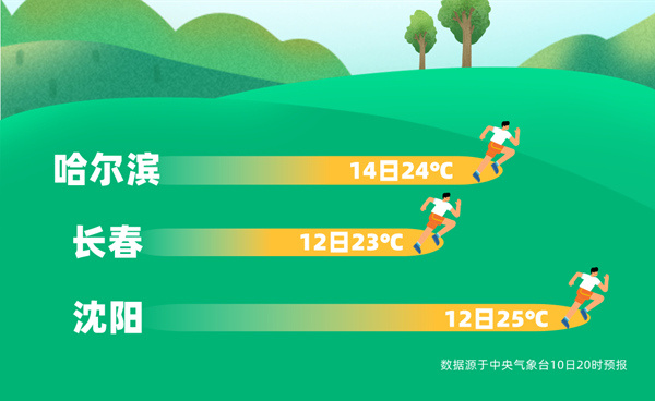 其中,14日黑龙江中东部和吉林东部甚至可能挑战同期最暖纪录。像哈尔滨,14日最高气温24℃,较常年同期大幅偏高10℃左右。