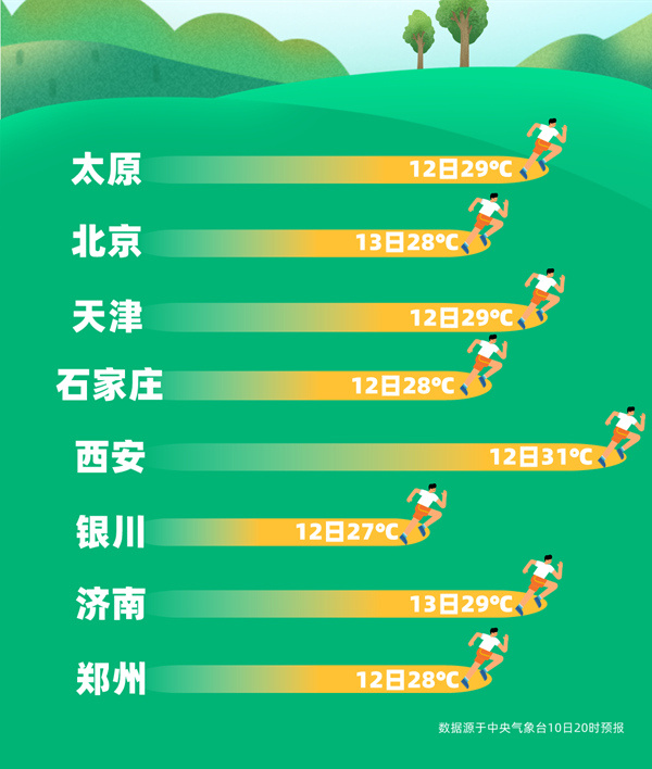 春天杯气温跑步比赛又拉开序幕!南北方气温铆足了劲向前跑,北方多地将创今年以来新高,部分地区甚至可能挑战同期最暖纪录;南方本周末部分地区也将冲击30℃。