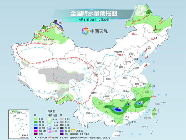 明天夜间至后天,江南中南部、西南地区东南部、广西东北部等地部分地区有中到大雨,其中,湖南南部、广西东北部等地部分地区有暴雨。