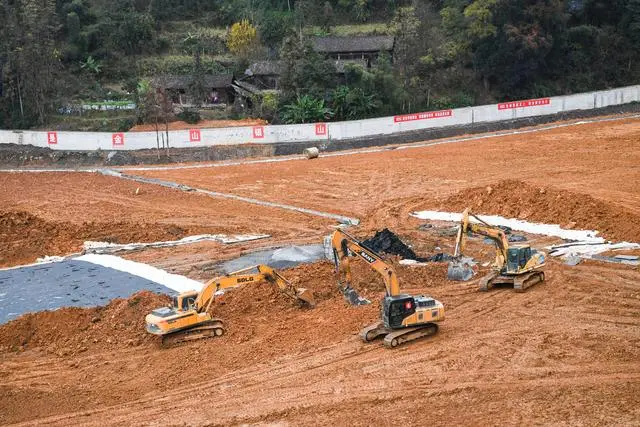 重庆市秀山县溶溪镇,武陵电解锰渣场综合治理和生态修复作业现场。新华社记者王全超 摄