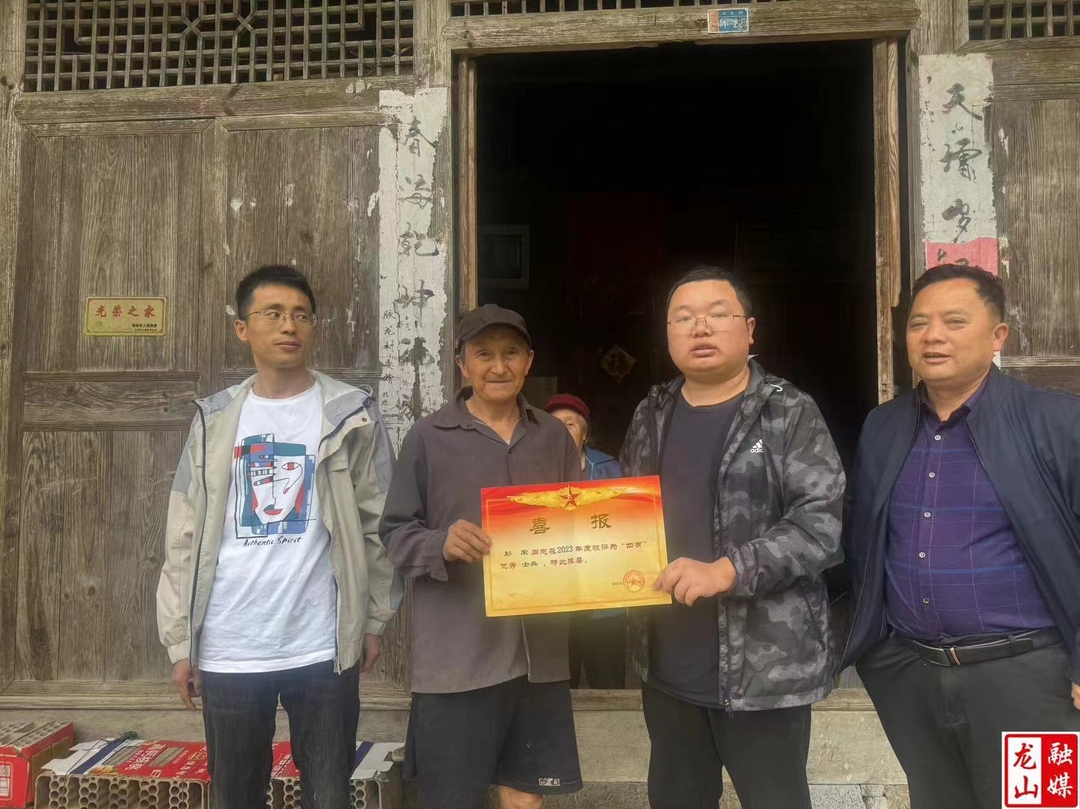 龙山县融媒体中心4月19日讯(通讯员 彭泽东 严正庭 黄禄高)4月18日,咱果乡组织退役军人服务站到辖区开展现役军人家庭悬挂“光荣牌”及为获得“四有”优秀士兵的军人家属送“喜报”活动。