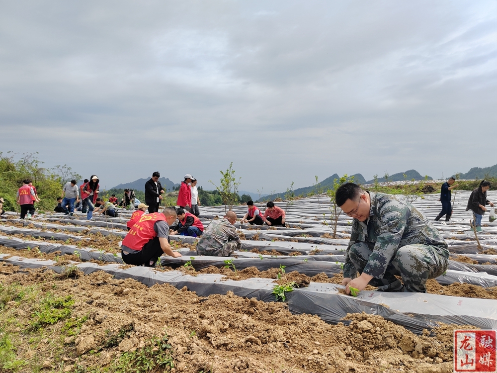 龙山县融媒体中心4月25日讯(通讯员 彭慧)一年春耕至,田家人倍忙。4月24日,走进靛房镇百型村田间地头,靛房镇党员干部和志愿者们正忙着与当地群众一齐栽种辣椒苗,迷彩服和红色志愿队服在辣椒种植基地上形成了一道亮丽的风景线。