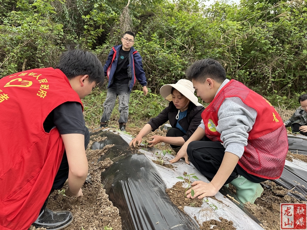 “在地膜上挖出一个小坑再将辣椒苗放入小坑内,扶正苗的同时将土填入坑中,并用手按紧土壤,播种后用细土盖2-3厘米,这样做有利于提高幼苗的成活率。”技术人员一边详细地给志愿者们和群众讲解辣椒苗移栽注意事项,一边演示辣椒苗的移栽过程。