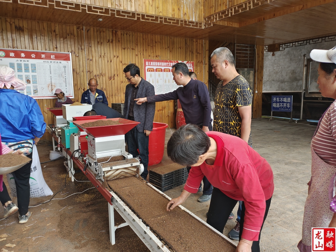 在黎明村育秧现场,村民们正将稻谷种均匀放入全机械化育秧机上。平整苗床、放秧盘,一次性就能操作完成……大家分工协作、忙得不亦乐乎。据了解,采用软盘旱地育秧的方式,每亩需要秧盘20盘,
