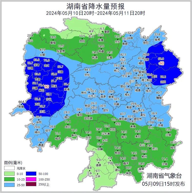 湖南省应急广播湖南交通频道提醒1、重点防范10日晚至11日湘中、湘南较强降雨及降雨叠加可能诱发的泥石流、滑坡等次生灾害,加强灾害隐患点的巡查排险;关注局地雷暴大风、冰雹等强对流天气对交通、农业及城市安全管理等的不利影响,提前做好防风加固及隐患排查。2、关注降雨对中稻播种育秧、油菜收获等农业生产的不利影响,及时清沟排水,防范湿渍害和病虫害,田间作业注意避开强对流天气时段。3、关注12日早晨湘北大雾对交通运输和出行安全等的不利影响。