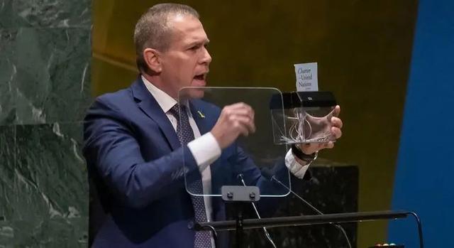 然而,会议现场接下来发生了惊世骇俗的一幕:以色列常驻联合国代表吉拉德·埃尔丹当着与会各国代表的面,拿出小型碎纸机,以极度侮辱性的动作,粉碎了一本随身携带的《联合国宪章》。