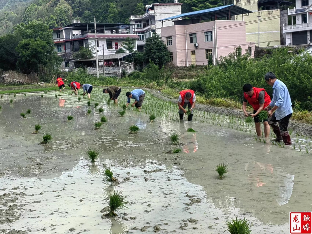 该村村民梁飞林的子女常年外出工作,面对繁忙的农时,他显得力不从心。得知这一情况后,工作队迅速行动,挽起裤脚,投身田间,与村民们一同进行种植工作。