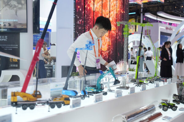 (湖南不同品牌工程机械模型吸引眼球。辜鹏博 摄)