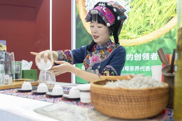 (张家界莓茶试饮现场。辜鹏博 摄)
