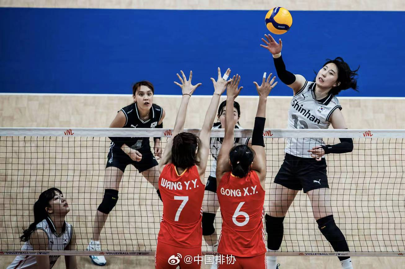 此役,中国女排首发派出主攻李盈莹、吴梦洁,副攻袁心玥、王媛媛,二传刁琳宇,接应龚翔宇,自由人王梦洁。首局中段,中国女排通过发球带动拦防,打出7比1的小高潮。25比15,中国女排顺利拿下首局。随后,韩国队在进攻端寻求变化,力求通过提速抢出进攻空间。中国女排则继续通过高度限制对手,并以25比16再下一城。第三局,龚翔宇、吴梦洁的高质量发球迫使对手频频失误,中国女排取得两位数的领先优势。比分打到21比11时,替补主攻张常宁登场。在袁心玥快攻连得两分后,中国女排25比14拿下比赛胜利。