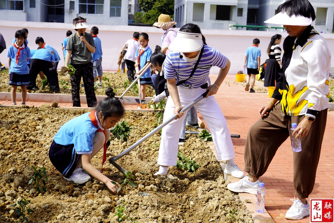仪式结束后,大家拿起锄头、铲子、水桶等工具来到劳动基地,老师和家长们一边讲解,一边动作示范,用自己的劳动经验传授松土、播种、种苗等技能。学生们认真学习每一个动作,松土、挖坑、投苗、盖土、浇水……各环节衔接有序,配合默契。大家在菜地里播下了玉米种子,种下了辣椒、西红柿等秧苗,在快乐的劳动中收获了知识。学生们纷纷表示,在耕耘的过程中,不仅掌握了劳动技能,还懂得了团结协作的重要性。