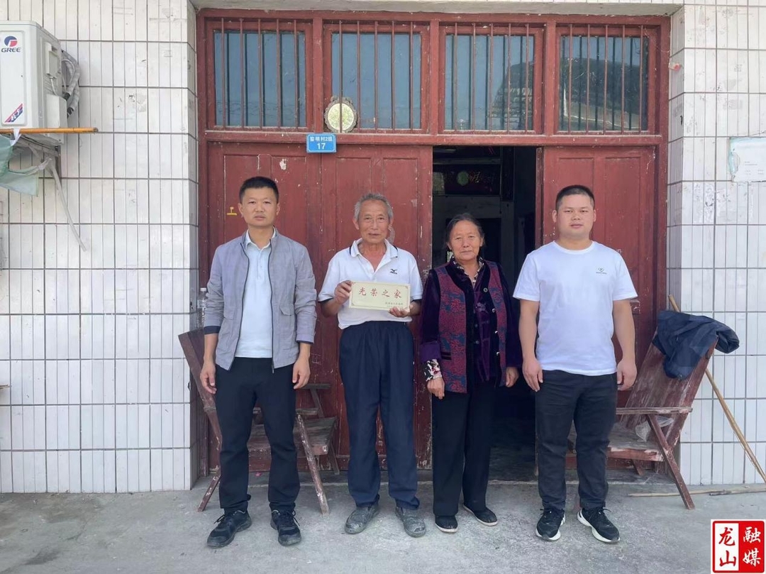 龙山县融媒体中心5月21日讯(通讯员 王平)5月20日,苗儿滩镇武装部和退役军人服务站工作人员为2024年春季入伍的新兵家庭上门发放并悬挂“光荣之家”牌匾。