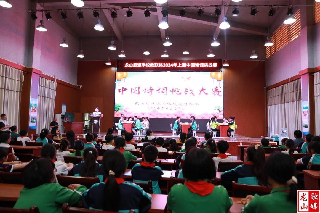当天,来自思源教联体的四所学校共20名决赛选手在“接花续木”“沙场点兵”“雾里看花”“月迷津渡”环节中对答如流。在“飞花令”环节中,参赛选手围绕“花”“云”“夜”等关键字,依次吟诵诗句,现场高潮迭起,经典诗词不绝于耳。另外,龙山县阅读名师给孩子们讲了诗人小故事,小故事蕴含大道理,从品诗到悟理,润物细无声,陶冶好情操。