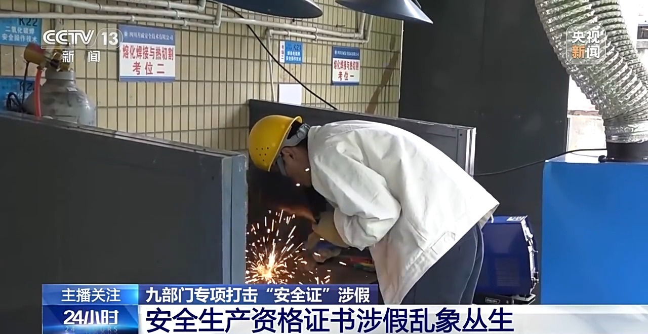 应急管理部执法工贸局局长 杨智慧:目前安全生产资格证书包括三类,一类是对高危行业企业的主要负责人,一类是高危行业企业的安全监管人员,这是必须持证上岗的,第三类就是特种作业人员必须持证上岗。特种作业操作证造假的比较多的,一个是住建部门的电工,架子工,就是咱们的高处作业,包括我们应急部管理的焊工,还有市场监管总局的特种设备操作证,这是市场需求量比较大,造假、制假比较多的几类。