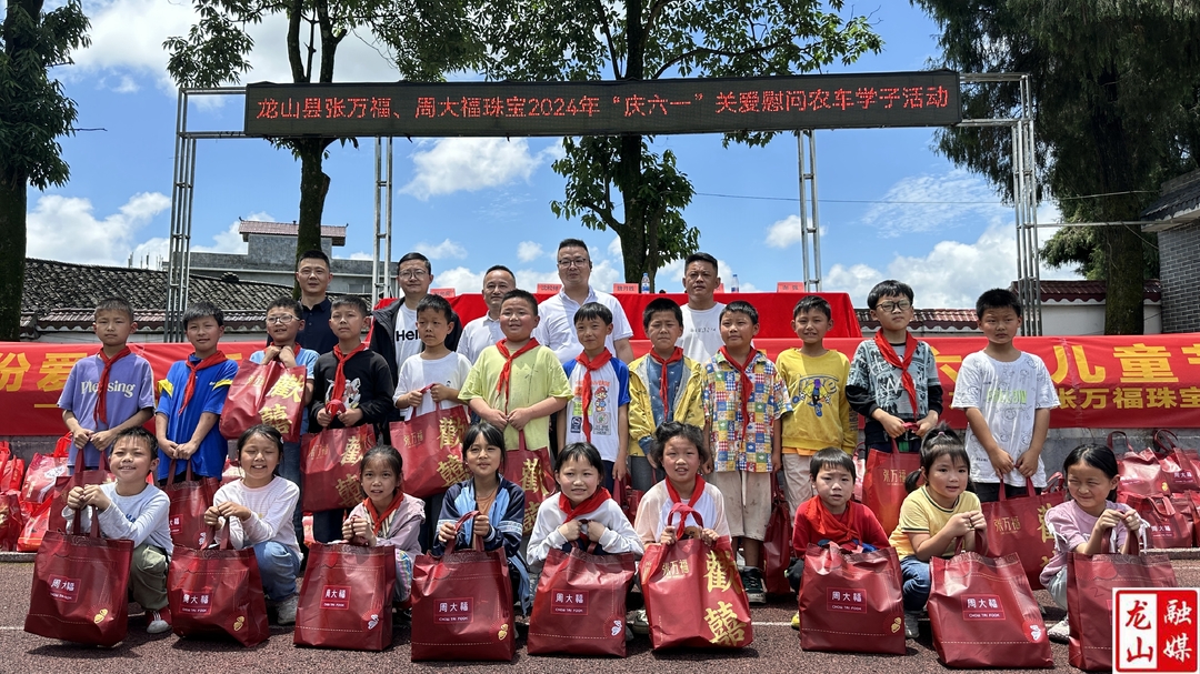 龙山县融媒体中心5月31日讯(通讯员  沈松林)5月31日,县工商联直属会员企业龙山县碧宏珠宝有限公司一行来到农车镇九年制学校,开展“献爱心、迎六一”活动。县工商联相关负责人参加活动。