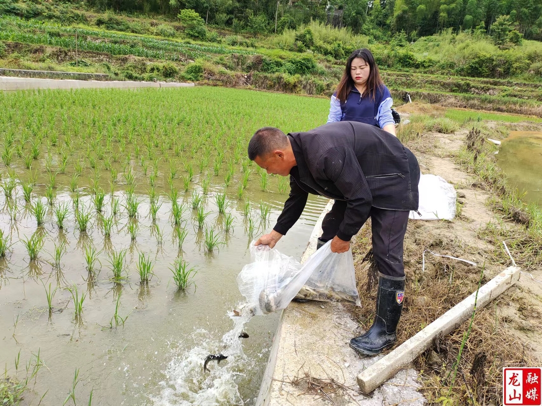 龙山县融媒体中心6月6日讯(记者 刘润)仲夏时节,水稻秧苗已“扎根”入泥中,正是投放鱼苗的最佳季节。洗洛镇青龙村今年发展稻田综合种养,首批“稻花鱼”投放下田,开始养殖,为水稻生产增添新的活力,助力村民增收。