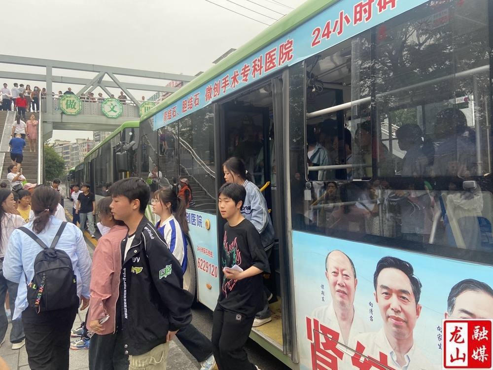 龙山县融媒体中心6月7日讯(记者 向德银 莫代银 )为给广大考生提供安全、快捷、舒适的出行环境,高考期间,龙山龙骧汽车公司组织公交、的士免费接送高考学生,为高考学子保驾护航。