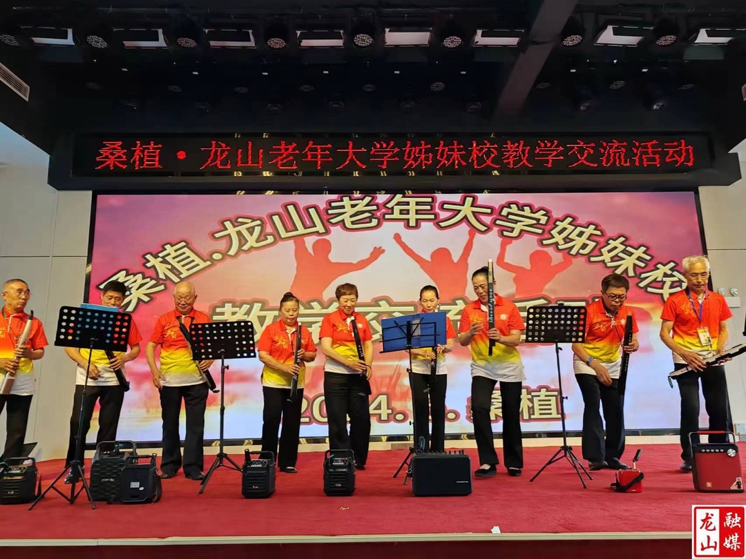 活动中,桑植县老年大学负责人致辞,欢迎姊妹校来学校开展教学成果交流,龙山县老年大学执行校长代表全体学员感谢该校的邀请,并互送锦旗,增加彼此的友谊。随后,举行了精彩的文艺表演。