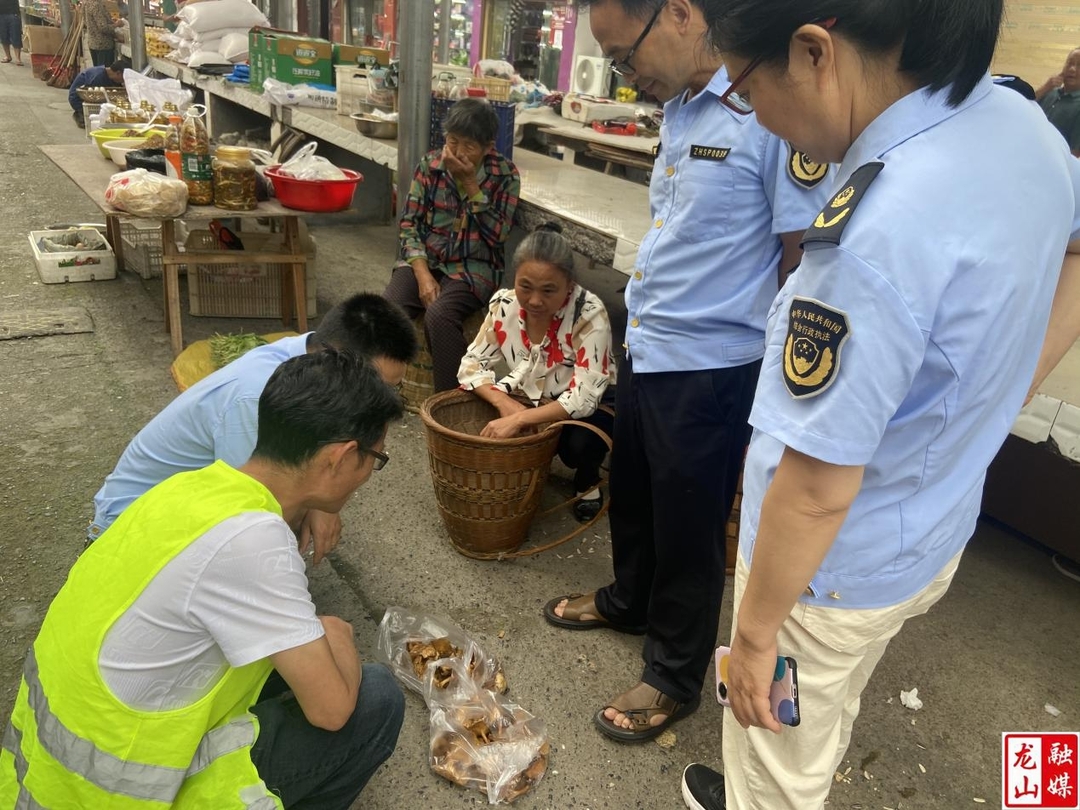 行动中,工作人员进入集市,查看各摊位是否有售卖野生蘑菇行为、并对售卖的野生蘑菇进行仔细检查,观察其是否有毒,并向摊贩和赶集群众宣传如何识别有毒蘑菇、食用有毒蘑菇的风险、应急处理措施。