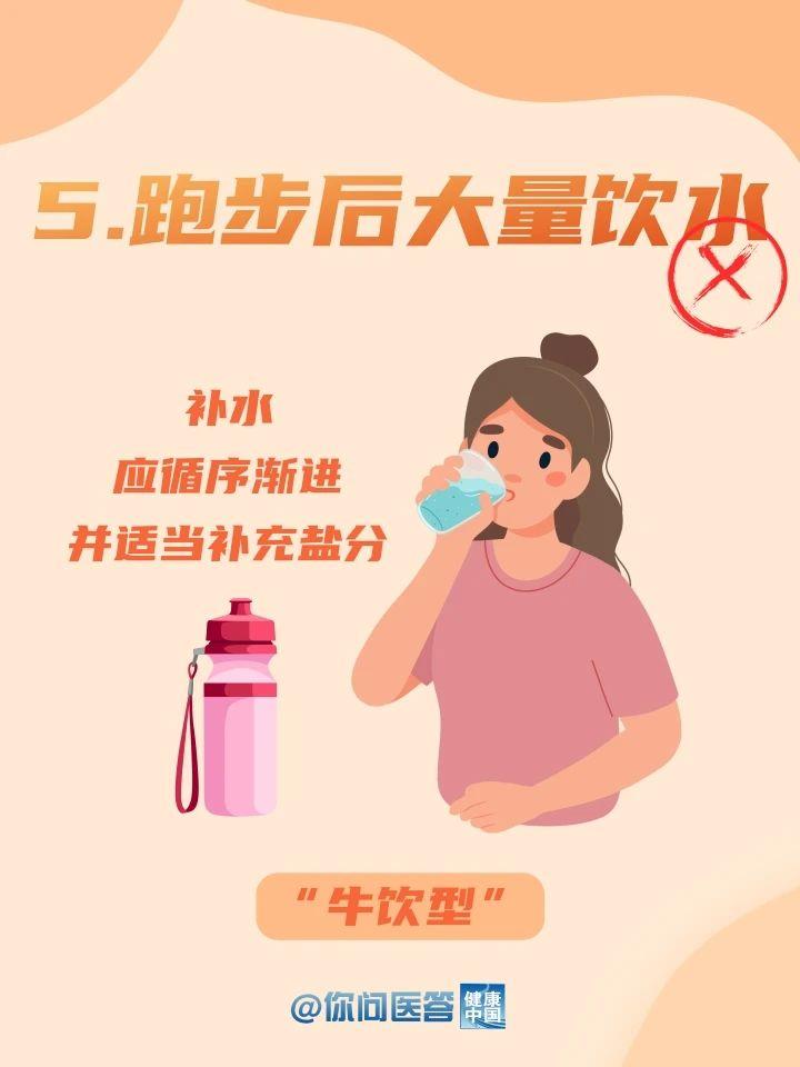 跑步后如果大量饮水,除了可能引起短暂的肠胃不适外,更有可能引起机体内电解质的紊乱,严重者可能会出现头晕等症状。正确的补水应当是循序渐进的,并适当补充盐分。