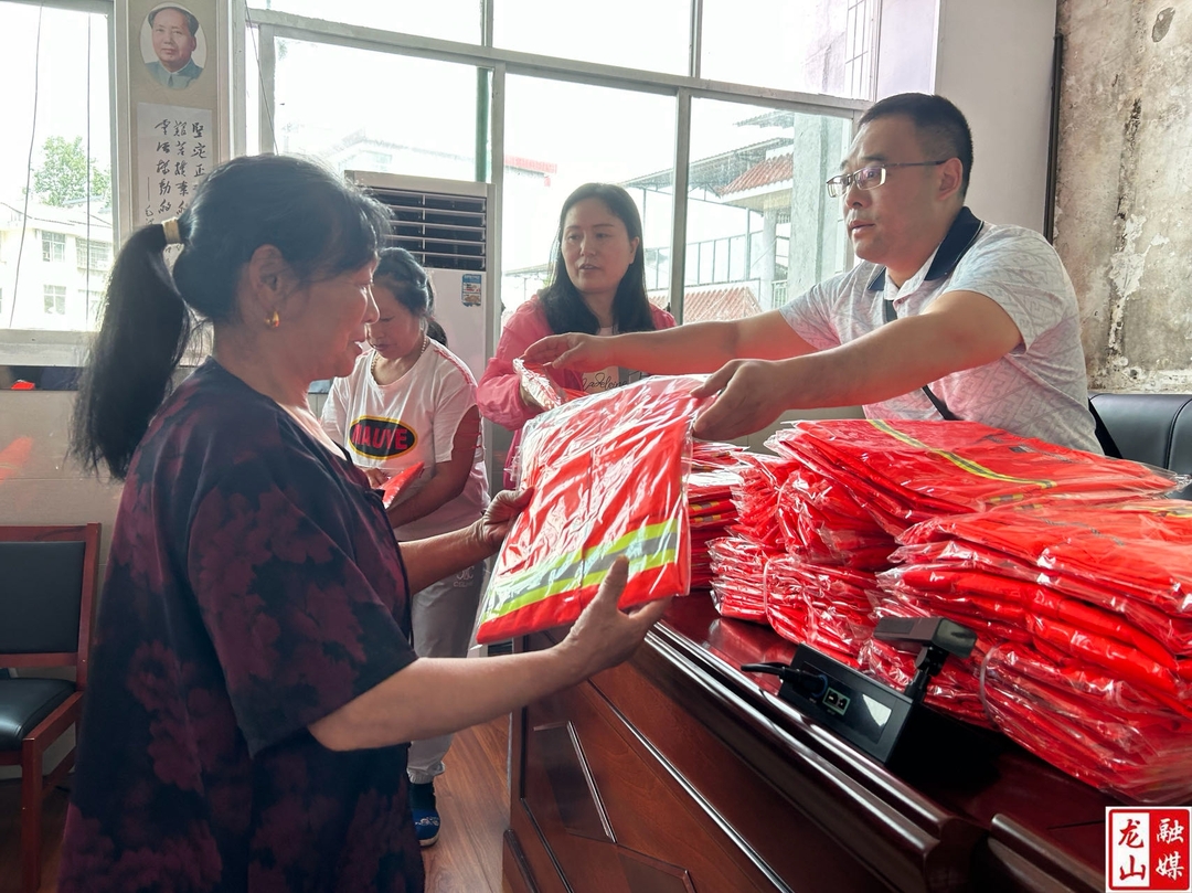 工作人员为生态护林员发放巡护马甲