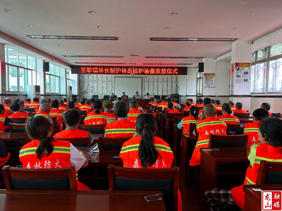 龙山县融媒体中心6月14日讯(通讯员 谭越)6月13日,龙山县林长制护林员巡护装备发放仪式在里耶镇举行,为里耶镇104名生态护林员配发马甲等巡护装备。县林业局相关负责人、县林长办负责人、里耶镇各级林长、护林员共计120余人参加仪式。
