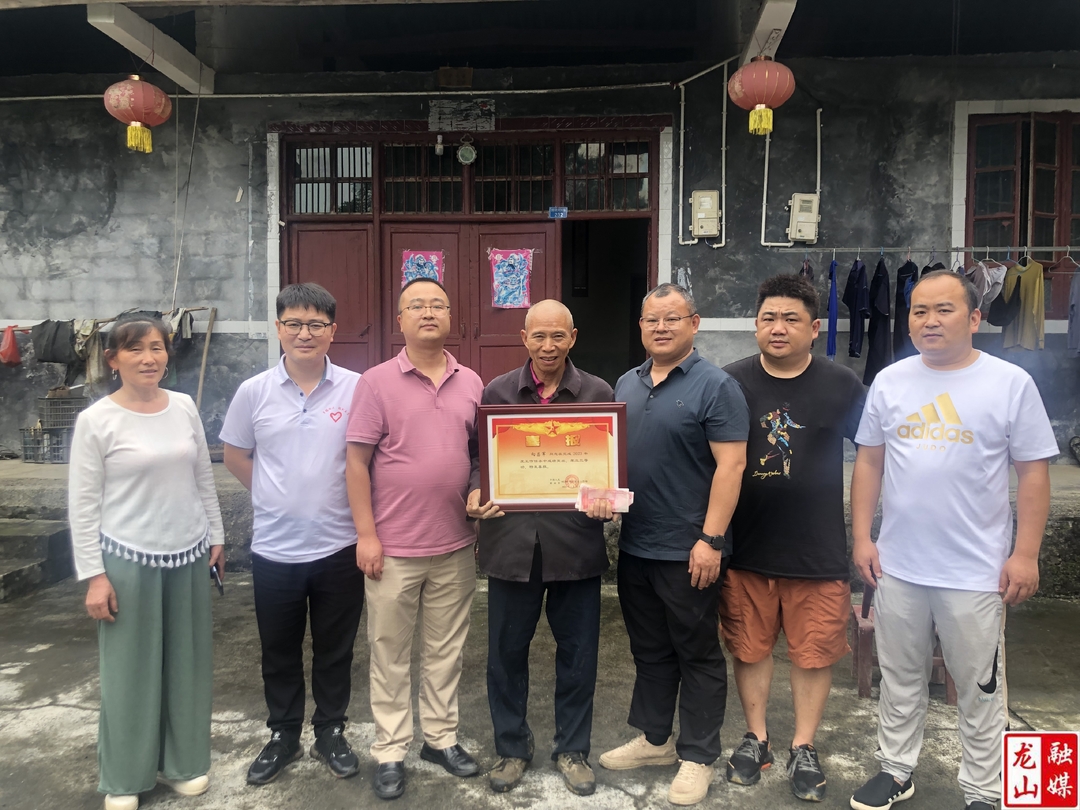 龙山县融媒体中心6月19日讯(通讯员 向宇 胡湘粤)6月18日,龙山县退役军人事务局、内溪乡武装部及乡退役军人服务站工作人员一行组成送喜报队伍,来到内溪乡洞坎村,为荣获三等功的现役军人向昌军家属送去三等功喜报和慰问金,向军属表达热烈祝贺和崇高敬意。