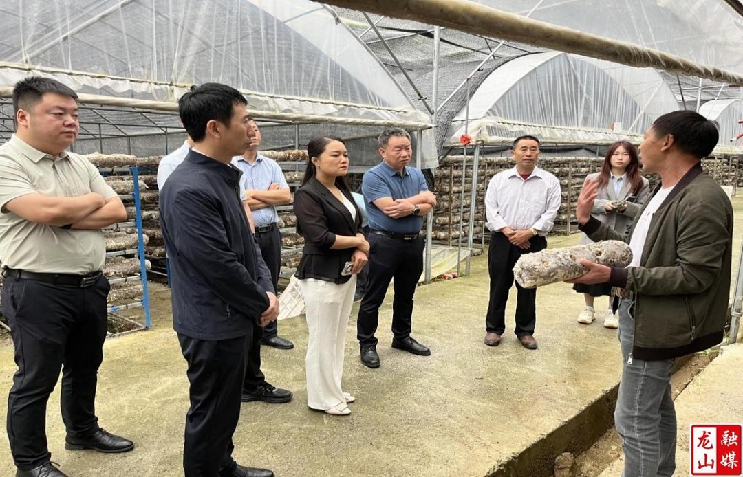 一行人登上海拔1200米的湘西大灵山,深入石牌镇桃兴村香菇基地,详细了解香菇种植所需原料、气温、销售渠道、价格等情况;实地考察了石牌镇产业园,察看园区建设,详细了解当地百合、腊肉等产品生产、储藏、加工、线上销售及品牌建设等情况。