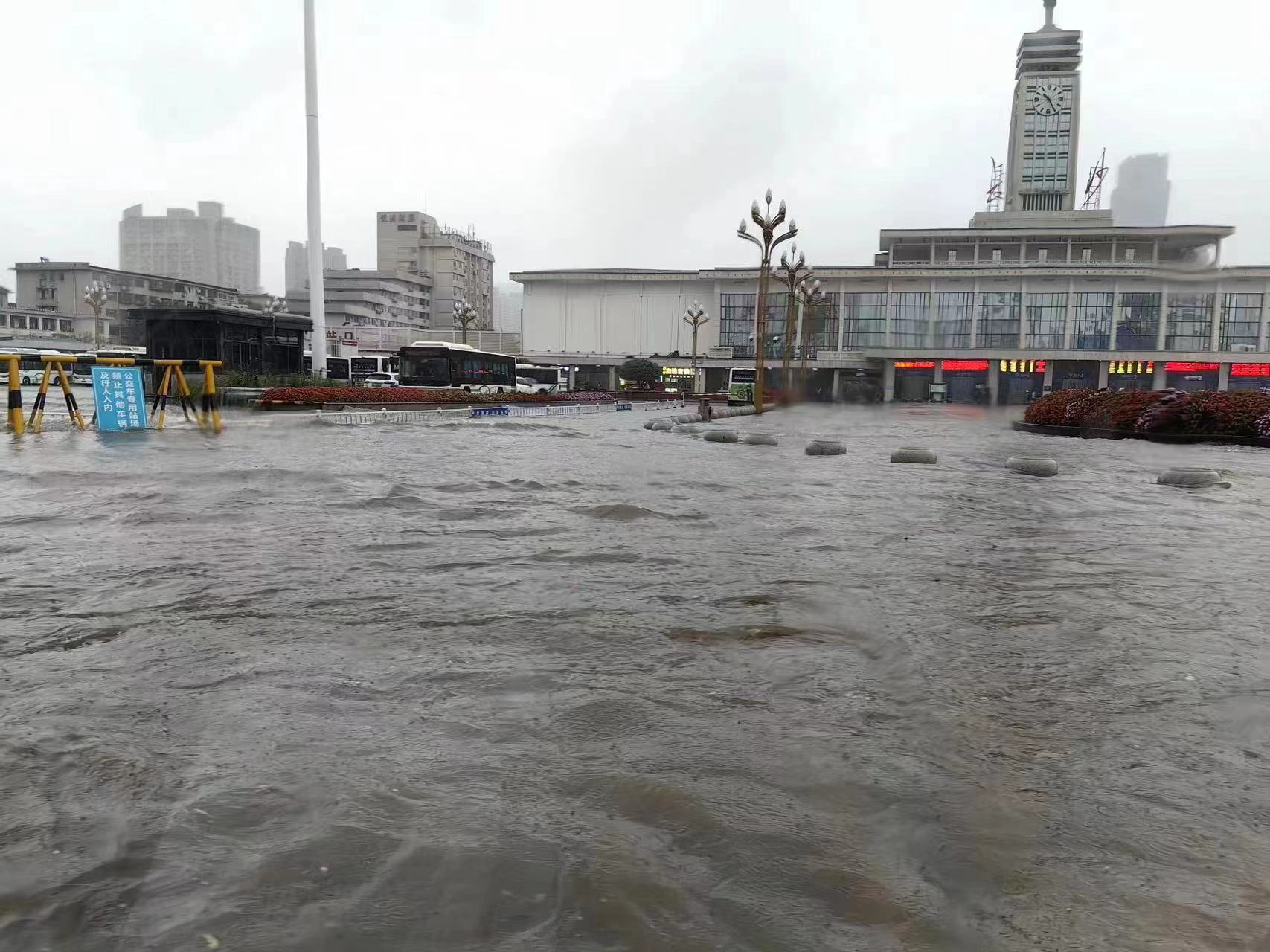 (6月24日上午,长沙火车站一片汪洋。通讯员供图)