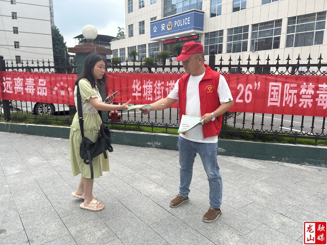 龙山县融媒体中心6月26日讯(通讯员 田安敏)6月26日下午,华塘街道办事处在岳麓大道两侧开展“6·26国际禁毒日”禁毒宣传教育活动。