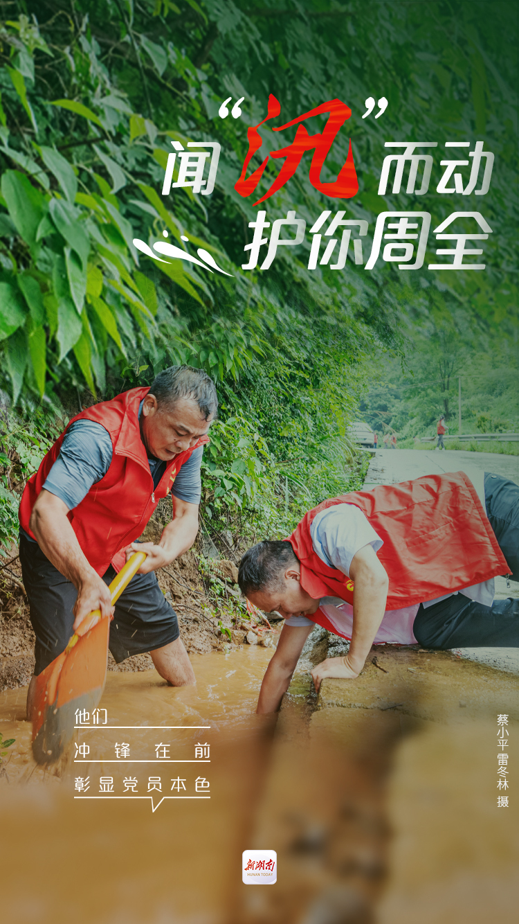 6月27日,东安县川岩乡白牙水村,党员及时清理淤泥、疏通涵管,确保道路畅通和群众出行安全。
