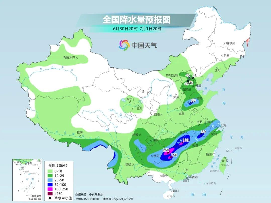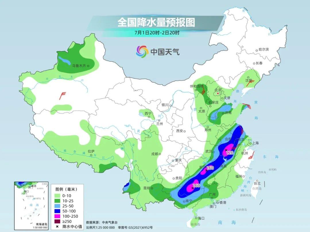 6月30日夜间起至7月2日,广西中北部、贵州至长江中下游一带仍是降水最为核心的区域。
