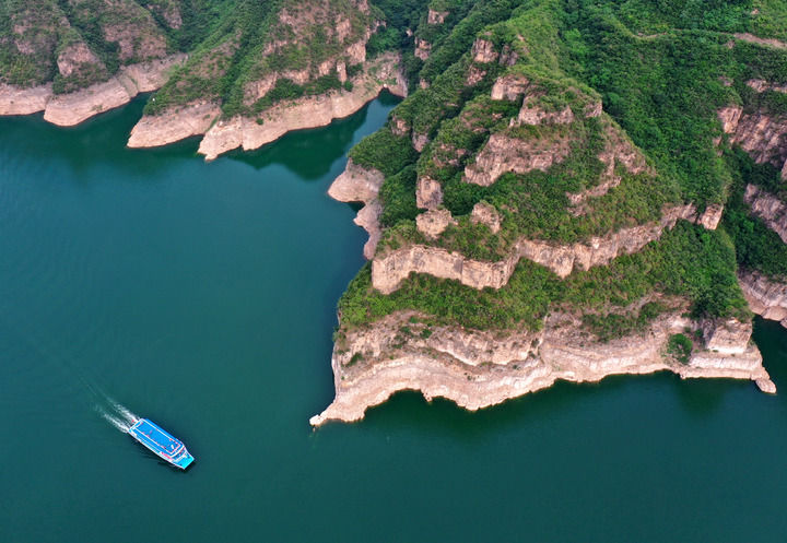 这是在河南省济源市拍摄的黄河三峡景色(2024年5月28日摄,无人机照片)。新华社记者 李安 摄
