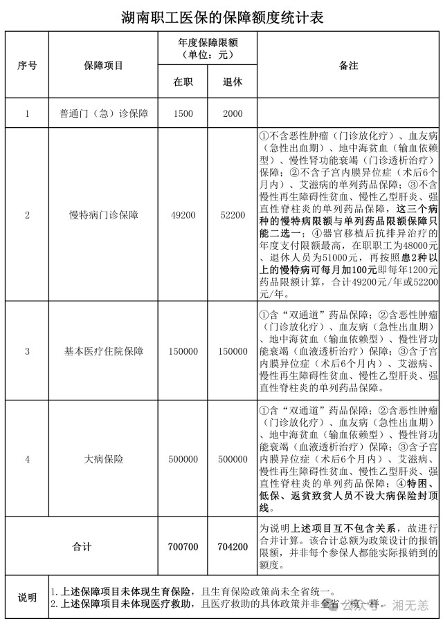 湖南日报7月3日讯(通讯员 湘无恙 全媒体记者 周倜)记者今天了解到,湖南省医疗保障局近日推出《湖南职工医保的保障额度统计表》,对职工医保中关于普通门(急)诊保障、慢特病门诊保障、基本医疗住院保障、大病保险的限额、包含范围等方面进行再次梳理,供所有参保职工掌握。