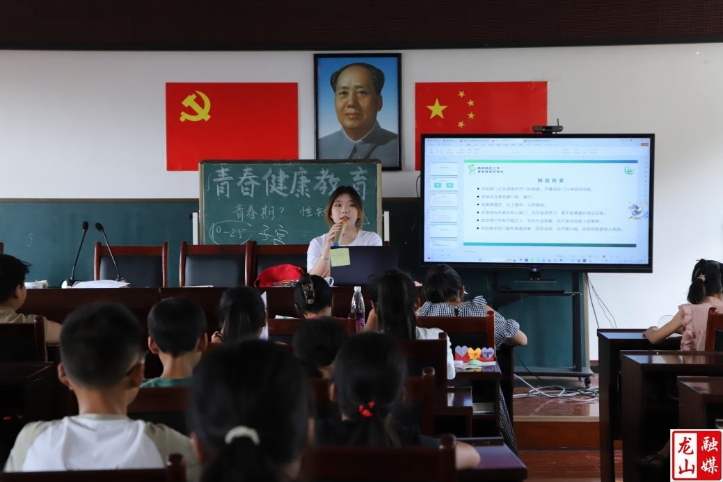 龙山县融媒体中心7月16日讯(通讯员 熊艺钦 向语嫣)7月15日上午,湖师大文学院“心心同‘湘’印,传梦茨岩塘”赴茨岩塘镇暑期社会实践团开展青春健康教育讲座。