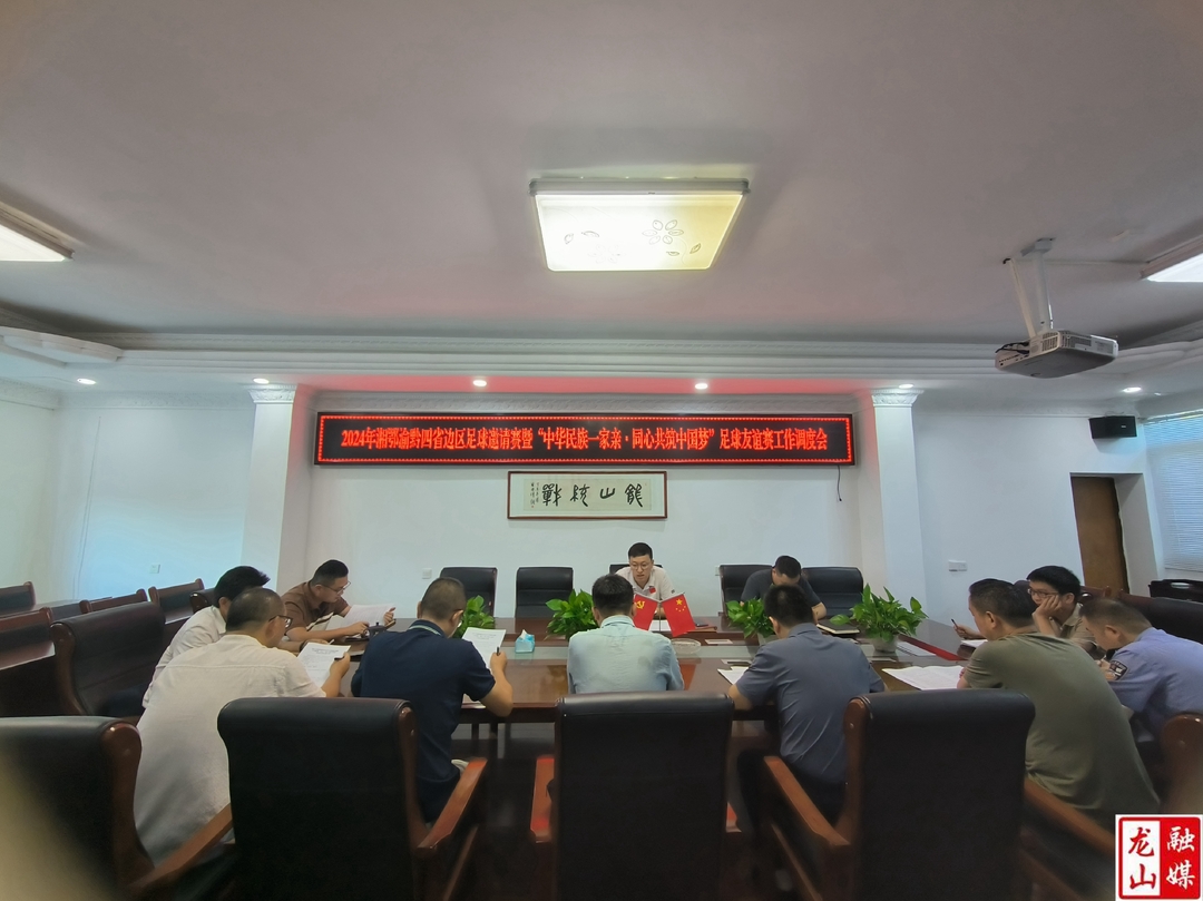 龙山县融媒体中心7月17日讯(通讯员 黄锐)7月16日,县委常委、县委统战部部长向怿文主持召开2024年湘鄂渝黔四省边区足球邀请赛暨“中华民族一家亲·同心共筑中国梦”足球友谊赛工作调度会。县直有关部门、华塘街道、县足球协会相关负责人参加会议。