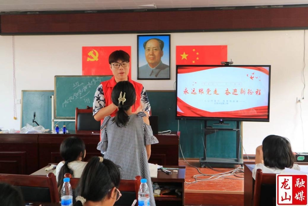 龙山县融媒体中心7月19日讯(通讯员 苏杨 赵林鹏 熊艺钦 向语嫣) 7月18日上午,湖师大文学院“心心同‘湘’印,传梦茨岩塘”暑期实践团在社区服务中心开展了红色论坛系列课程。