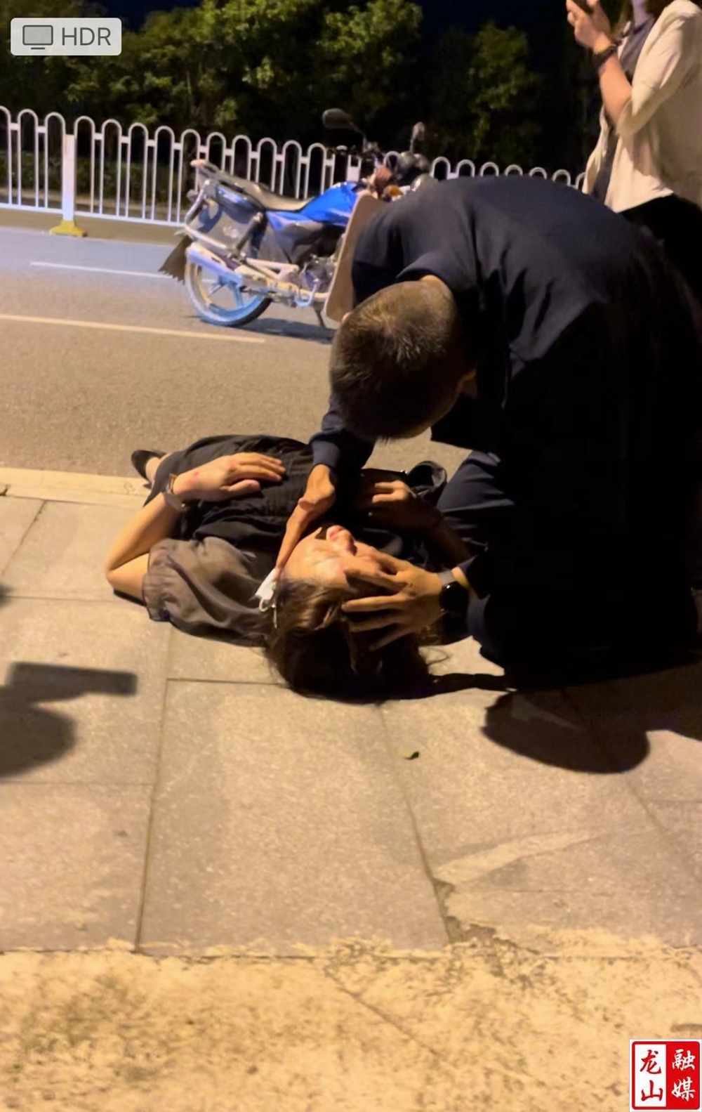 龙山县融媒体中心7月21日讯(记者 朱勇 黄超)7月20日晚,龙山县一女子骑电动车行驶至209国道龙山县红星美凯龙路段时突然倒地昏迷不醒,刚好路过的驻滇31632部队战士游卓和一名摩托车司机将该女子救醒。