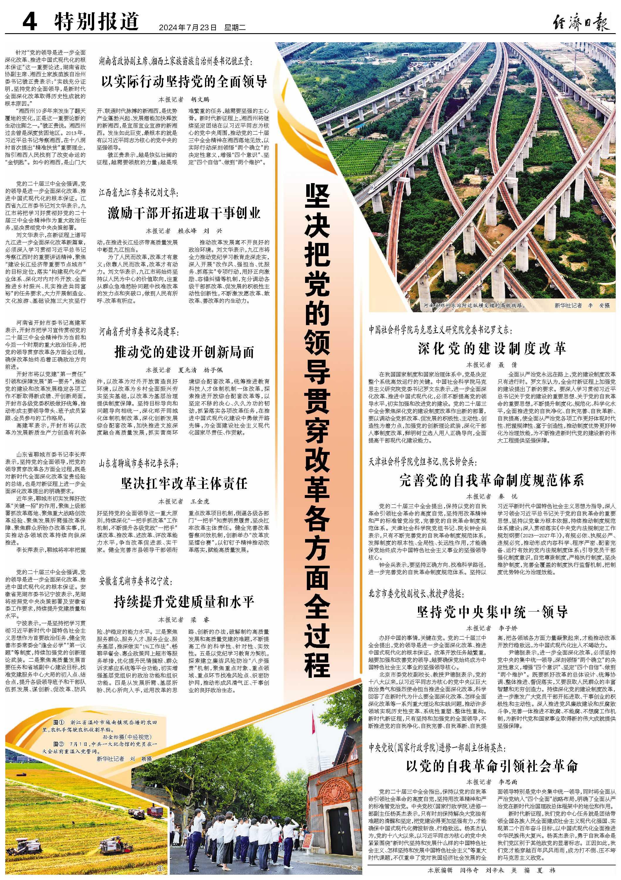 针对“党的领导是进一步全面深化改革、推进中国式现代化的根本保证”这一重要论述,湖南省政协副主席、湘西土家族苗族自治州委书记虢正贵表示:“实践充分证明,坚持党的全面领导,是新时代全面深化改革取得历史性成就的根本原因。”