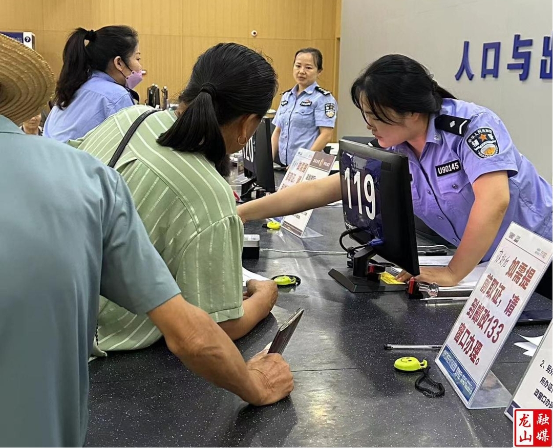 龙山县融媒体中心7月24日讯(通讯员 莫晏 康锐)“暑假到来,大家出门到各地旅游。近期来办理出入境、身份证业务的人特别多,办证大厅非常火爆。”人境大队工作人员说道。