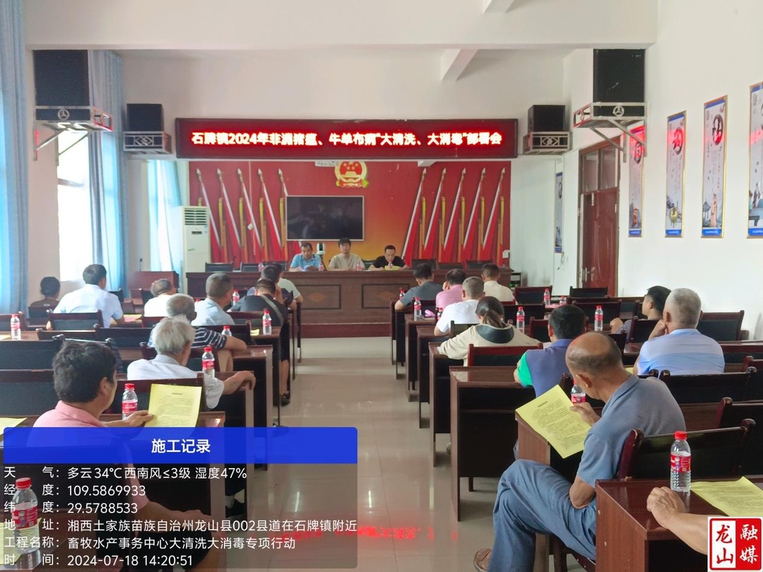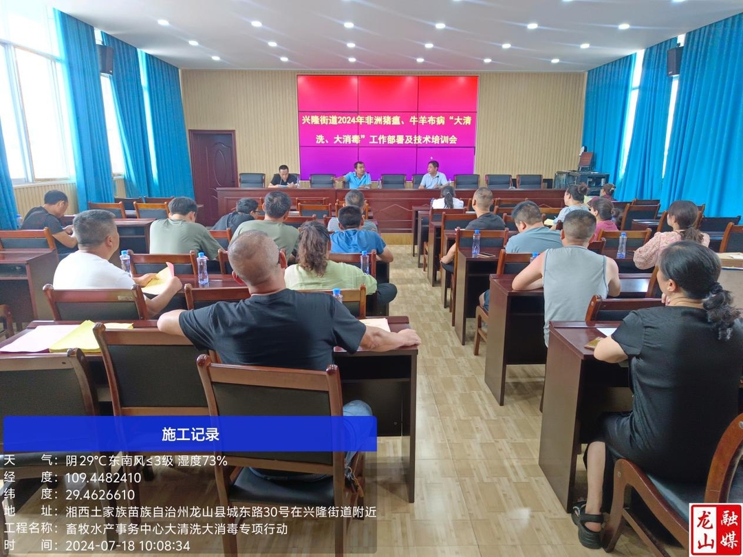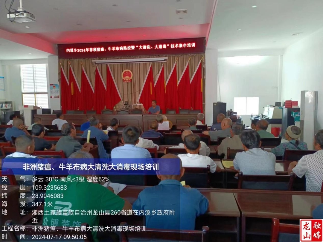 龙山县融媒体中心7月25日讯(通讯员 姚华清)近日,县畜牧水产事务中心开展《非洲猪瘟、牛羊布病“大清洗大消毒”专项行动,按照包片分组,组织4个动物疫病防控小组到21个乡镇(街道)开展非洲猪瘟、牛羊布病防控宣传培训,组织培训活动21场次,累计培训人员1000余人参加,发放消毒药品150余件,发放各类宣传资料5000余份,实现县域内全覆盖。