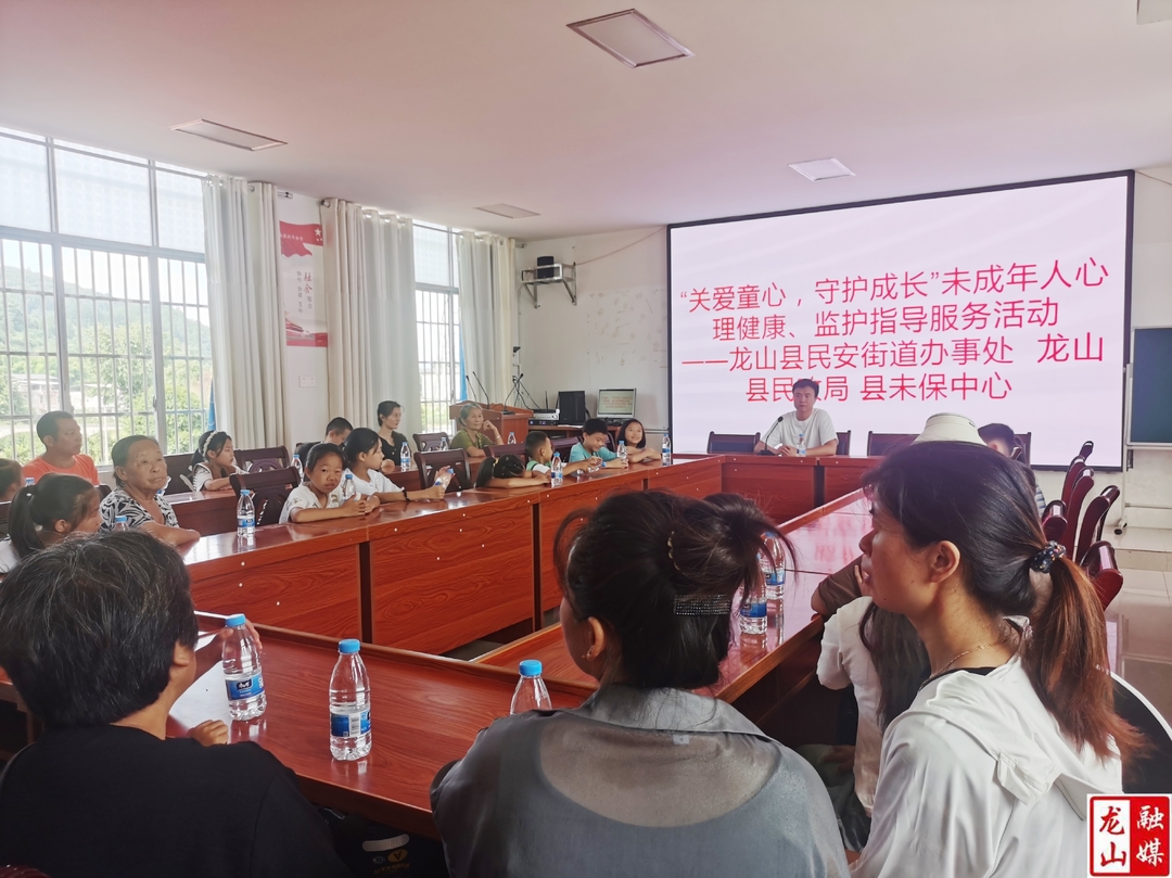 龙山县融媒体中心8月5日讯(通讯员  田娅月)8月5日, 民安街道办事处、县民政局、县未保中心在大堰坪社区开展了“关爱童心、守护成长”未成年人心理健康、监护指导服务活动及“防性侵、防溺水、防拐卖”安全教育主题活动,旨在助力未成年人心理健康成长,筑牢暑假期间学生安全防线。民安街道大堰坪社区、三湾塘村、红星村等60余名学生及家长参加活动。