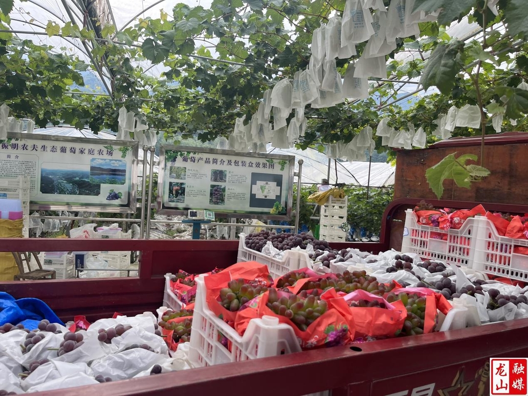 龙山县融媒体中心8月14日讯(通讯员 彭艳丽 )时下,正是葡萄上市的季节,石牌镇桂英村177亩新农夫果园的葡萄也迎来了丰收,满园葡萄飘香,无数游客慕名而来。