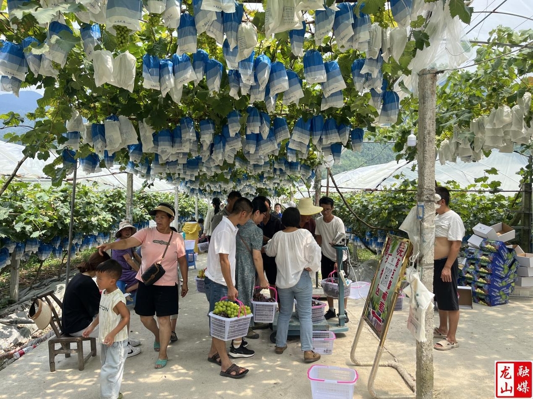 “我是湖北的,暑假假期和小姐妹们一起过来采摘,葡萄清脆香甜,在这里不仅能体验采摘乐趣,还能品尝美味,我也会推荐其他朋友过来。”采摘游客向女士欣喜分享。
