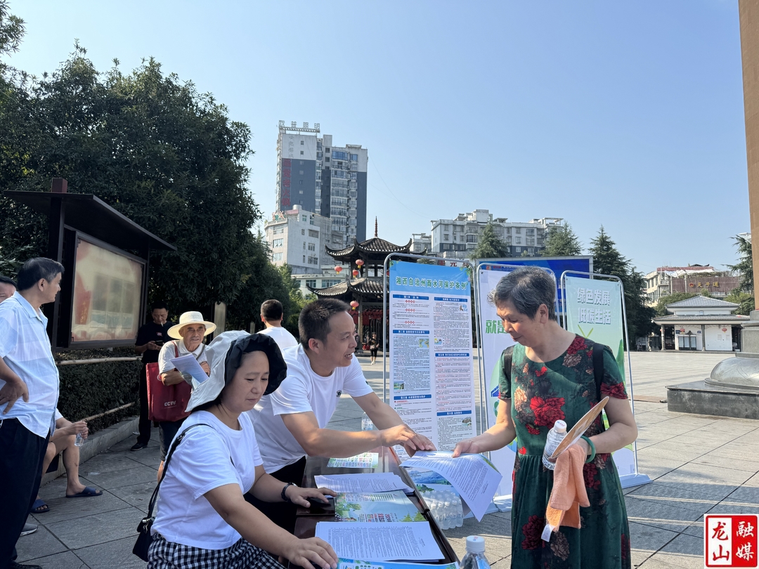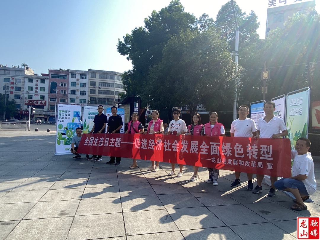 龙山县融媒体中心8月15日讯(通讯员 尚小红 夏金凤)8月15日上午,县发改局在龙凤广场开展了“促进经济社会发展全面绿色转型”的全国生态日宣传活动。