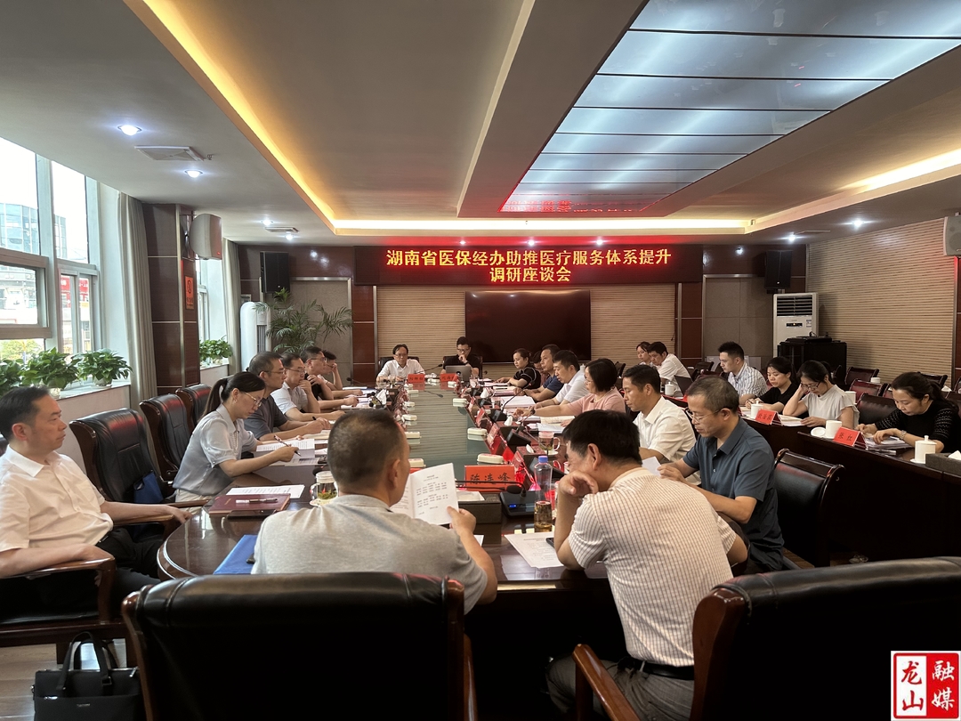 龙山县融媒体中心8月15日讯(记者 马菲 通讯员  杨红娇 田丽娜)8月14日,省医疗保障局党组成员、副局长孙兆泉带队来县调研指导医保经办助推基层医疗服务体系提升工作。副州长高湘文出席会议并讲话,县领导梁兴华、余志国参加会议。