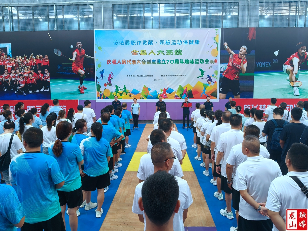 龙山县融媒体中心8月28日讯(记者  莫代银)为庆祝人民代表大会制度建立70周年,8月27日,龙山县人大系统趣味运动会在县体育中心举行。县人大常委会主任黄勇,县人大常委会副主任叶明江、唐晓萍、余志国、梁海波、田世忠出席开幕式。